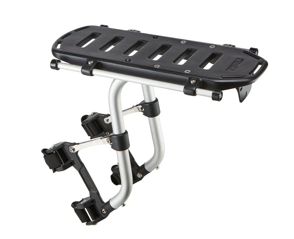 Thules nye geniale bagagebærer gør det muligt og montere en bagagebærer på forgaflen eller på bagstellet på cykler uden huller til montering.